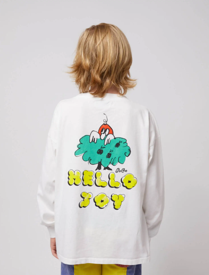 Timeless and cozy, this offwhite t-shirt is a wardrobe essential. Made from 100% organic cotton, it features long sleeves, a dropped shoulder, and ribbed cuffs for added comfort. The loose fit and round neck complete its classic design. Thoughtfully made in Spain.